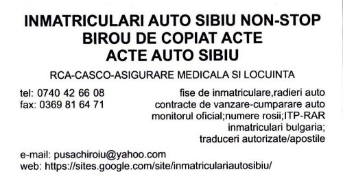 ACTE AUTO SIBIU NON STOP TEL 0740426608