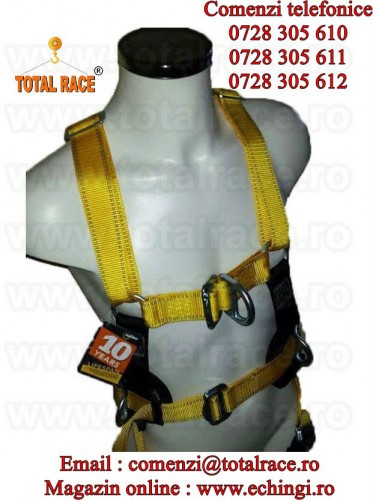 Total Race livreaza din stoc Bucuresti centuri siguranta tip ham pentru lucru la inaltime , carabine , mijloace de legatura , centuri de siguranta utilizate de catre muncitori care lucreaza la inaltime timp indelungat si in spatii deschise , mijloace de legatura , centura de siguranta pentru protectie in timpul lucrului pe schele , hamuri pentru protectie in timpul utilizarii platformelor la inaltime , kituri complete de siguranta la inaltime , centuri complexe siguranta ham, centuri pozitionare lucrul la inaltime , carabine , mijloace de legatura , franghii.