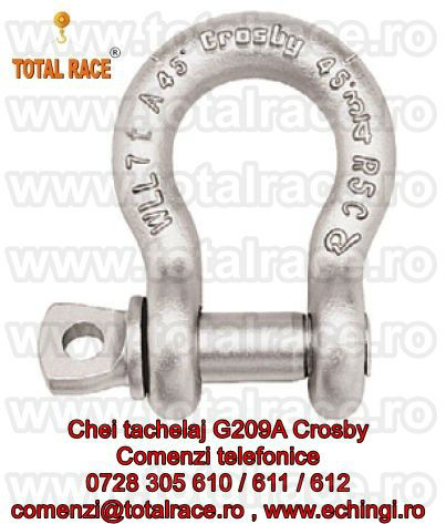 Total Race livreaza din stoc Bucuresti chei tachelaj Omega G209A Crosby , cheie tachelaj omega cu bolt filetat G209A , chei tachelaj G209A, echipamente de ridicat Crosby , cheie tachelaj omega de inalta rezistenta forjata G209A Crosby , chei tachelaj pentru uz industrial G209A Crosby , chei tachelaj forjate G209A Crosby , chei tachelaj omega rezistenta ridicata G209A Crosby, chei tachelaj, chei tachelaj omega, gambeti , sisteme de ridicare , fixare si ancorare – gambeti G209A Crosby® . Cheile de tachelaj Crosby® se livreaza cu certificate de calitate CE de la producator. Pentru detalii accesati: www.echingi.ro & www.cheitachelaj.ro