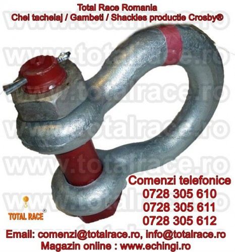 Total Race comercializeaza cu livrare din stoc Bucuresti: chei tachelaj omega cu bolt filetat, pilita si stift de blocare , chei de tachelaj model G 2130 tip omega marca Crosby, , chei tachelaj capacitate intre 0,33 Tone si 150 Tone . Chei de tachelaj cu factor de siguranta: MBL = 6 x WLL (Sarcina maxima de lucru) , cheie tachelaj: Forjat-Calit si Temperat,material otel aliat, galvanizata la cald. Capacitatea stantata permanent pe shackles. Cheile de tachelaj peste capacitate WLL= 25 tone sunt echipate RFID. Cheile de tachelaj Crosby® se livreaza cu certificate de calitate CE de la producator. Pentru detalii accesati: www.echingi.ro & www.cheitachelaj.ro