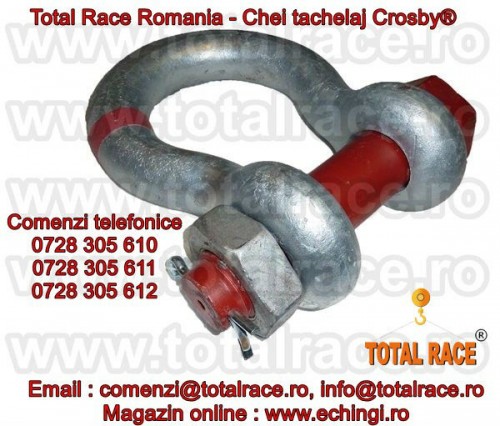 Total Race comercializeaza cu livrare din stoc Bucuresti : chei de tachelaj model G 2140 tip omega marca Crosby, cheie tachelaj cu bolt, piulita si stift de blocare , chei tachelaj capacitate intre 21 Tone si 400 Tone . Cheile de tachelaj sunt in conformitate cu: EN 13889:2003 si indeplinesc cerintele de performanta ale Fed. Spec. RR-C271D tip IVA, grad A, Clasa 3. Chei de tachelaj cu factor de siguranta: intre 21 tone si 175 tone: MBL = 5,4 x WLL (Sarcina maxima de lucru), intre 200 tone si 400 tone: MBL = 4 x WLL. Cheie tachelaj sunt forjate,galvanizate la cald. Capacitatea stantata permanent pe shackles. Cheile de tachelaj sunt echipate RFID. Cheile de tachelaj Crosby® se livreaza cu certificate de calitate CE de la producator. Pentru detalii accesati: www.echingi.ro & www.cheitachelaj.ro