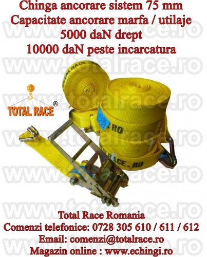 Total Race livreaza din stoc Bucuresti chingi transport marfa agabaritic , chingi ancorare 10 tone , chinga ancorare utilaje , chingi arimare 10 tone pentru marfa , sufe de ancorat 10 tone pentru utilaje, chingi ancorat marfa din poliester 10 tone , chinga 10 tone asigurare transport marfa. Chingile textile de ancorare 10 tone sunt insotite de Declaratie de Conformitate. Detalii : www.echingi.ro