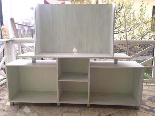 Comoda alba cu striatii gri, este realizata la comanda si utilizata doar cateva luni. Se afla intr-o stare foarte buna