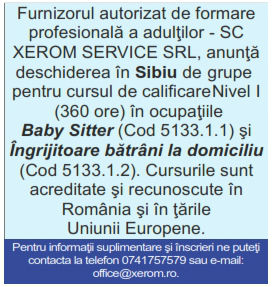 Cursuri de calificare Baby Sitter și Îngrijitor Bătrâni la Domiciliu