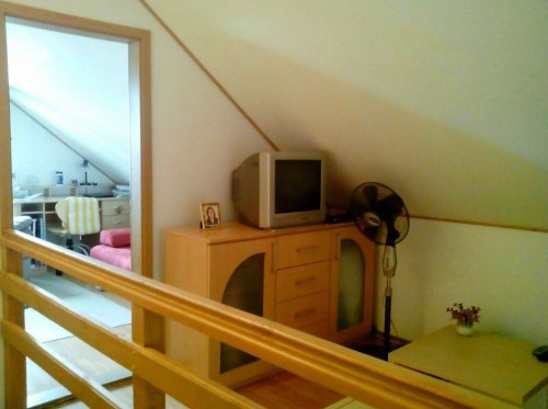 Apartament la mansarda spatios si modern, in zona Mihai Viteazu, cu o suprafata de 63 mp. Locuinta se afla intr-o zona linistita si este complet mobilata si utilata. Imobilul este impartit pe 2 nivele si este compus din: living+bucatarie 2 dormitoare la etaj, hol, baie, balcon. In apropiere se afla statia de autobuz, spatiile de agrement, scoli, gradinite, magazine.