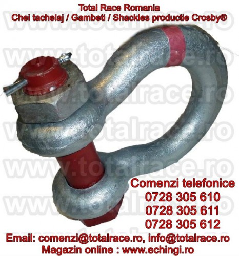 Total Race livreaza din stoc Bucuresti chei tachelaj/gambeti/shackles productie Crosby diverse modele : chei tachelaj omega , chei tachelaj drepte , gambeti cu bolt filetat , gambeti cu bolt , piulita si siguranta, chei tachelaj speciale pentru teatru,scene,shackles ROV pentru industria marina,gambeti pentru sarcini foarte grele,chei tachelaj off road.Gambetii sunt forjati, material otel-aliat, galvanizati la cald avand capacitatea stantata permanent pe shackles.