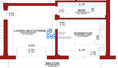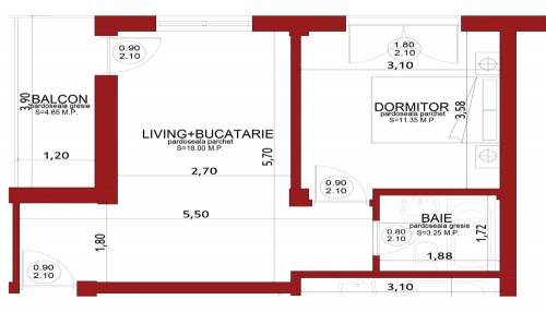 Apartament 2 camere – 44.90 mp utili + balcon 8.55 mp – 28500 euro