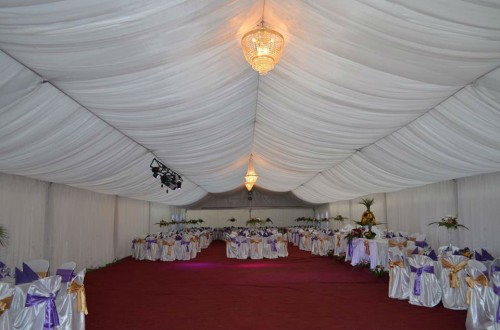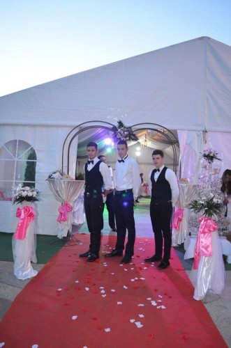 Corturile sunt complet utilate si dotate cu toata logistica necesara: podea, mocheta, drapaje, candelabre, mese, scaune, huse scaune, vesela completa, huse lycra si brocard.