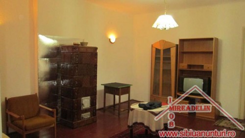 Ofer spre inchiriere apartament cu 2 camere, la etajul 1, la casa, situat in zona pietei Cibin, foarte aproape de centrul vechi cu o suprafata utila de 54 mp. In imediata apropiere se gasesc, institutii financiar bancare, institutii de invatamant, statii pentru mijloacele de transport in comun, magazine alimentare. Apartamentul se inchiriaza complet mobilat si utilat. Compartimentarea este dispusa astfel: nedecomandat cu doua dormitoare , bucatarie , 1 baie. Imbunatatiri: gresie, faianta, parchet laminat, sistem de incalzire cu soba de teracota cu functionare pe gaz metan. Dotari: acces la internet, cablu TV, interfon. Pret: 200 Euro + 1 luna garantie. Mai multe detalii la tel: 0748829400, 0745503478.