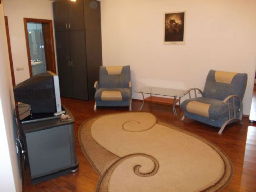 Inchiriez apartament 3 camere, confort 1, zona Interex. Apartamentul are suprafata utila de 76 mp, este situat la parter inalt, decomandat, din caramida. Compartimentarea este dispusa astfel: bucatarie cu living open space, 2 camere decomandate, 1 baie, hol, garaj. Apartamentul dispune de urmatoarele imbunatatiri si finisaje: parchet, gresie, faianta, usa de metal la intrare, usi interior de lemn, geamuri termopane, centrala proprie. Apartamentul se inchiriaza mobilat si utilat la pretul de 280 Euro+1 luna garantie. Mai multe detalii la numarul de telefon: 0747938928.