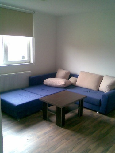Apartament 2 camere, la mansarda, finisat la cheie, gresie, faianta, centrala, baia utilata(cada baie, wc, lavoar), parchet, usi interioare, geamuri termopan, izolatie exterioara, mobila de bucatarie, dormitor mobilat, living utilat( canapea extensibila, masa, mobilier )