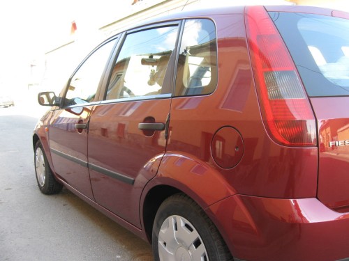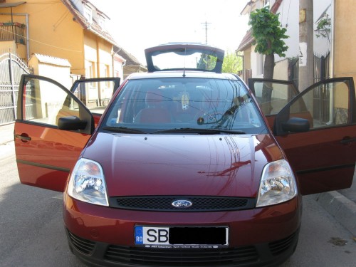 Ford Fiesta, 1.299 cm3, an 2003, inmatriculata Romania 11/2008 la 32.000 km, taxa platita si nerecuperata, primul proprietar RO, fara accident, 74.500 KM reali, 70 CP (51 kW), benzina, culoare visiniu, ABS, A/C, distributie pe lant, servo directie, transmisie manuala, geamuri electrice fata, inchidere centralizata, volan piele si reglabil pe inaltime, scaune reglabile pe inaltime, radio CD original Ford, interior curat (nefumator), 2 chei, 8 airbag-uri, 4 anvelope iarna Michelin cu jante. Tara de origine Germania.