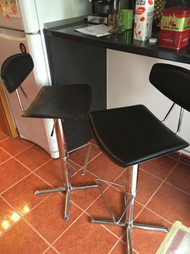 vand 2 scaune bar reglabile cu spatar tip Mobexpert din piele ecologica neagra, in stare excelenta. pret 200/buc