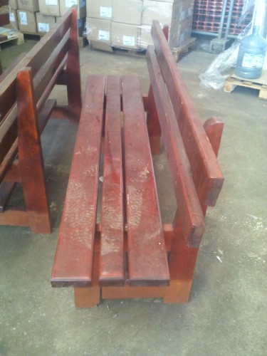 Vand set mobilier de gradina sau de restaurant outdoor,grosimea lemnului este de peste 6 cm si are culoarea maro, setul cuprinde o masa de gradina cu doua bani pentru masa, una de ficare parte a mesei, disponibile 2 seturi, nu se vinde pe bucati, doar pe set pretul este negociabil.